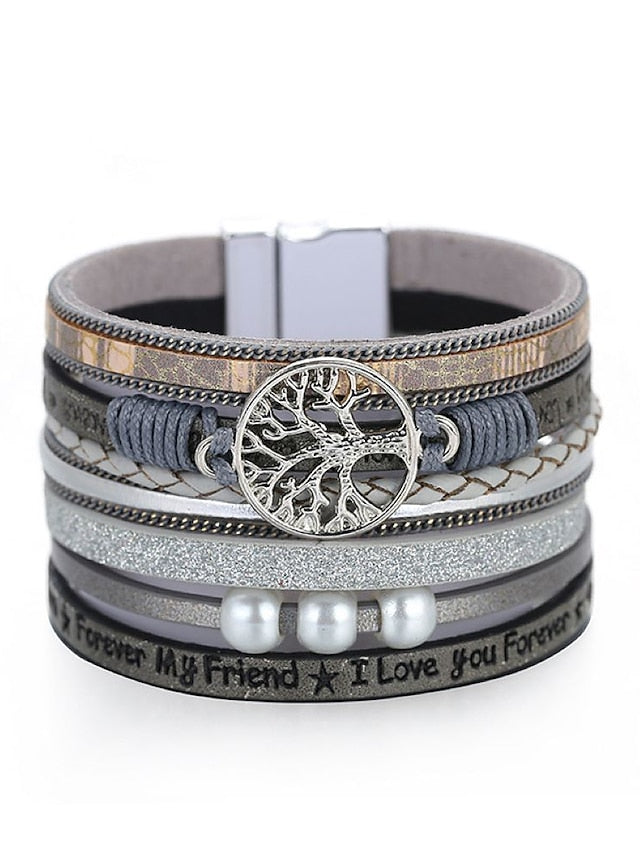 1PC Classic Fashion Vintage Theme Statement Rock Leather Pearl Bracelet Jewelry 5# For Halloween Gift Daily Beach for Women