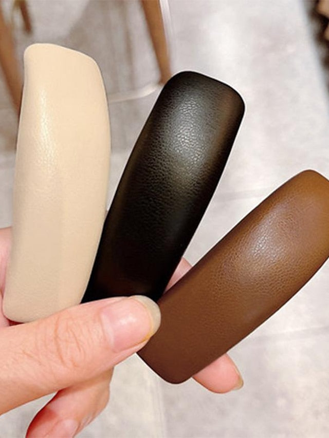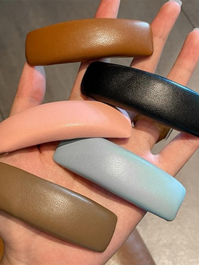 1PC Girls' Hair Clip For Classic PU Leather Pink Brown Grey for Women