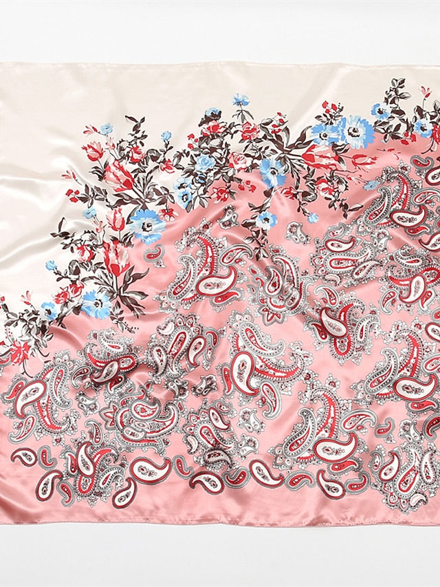 1pcs 90*90cm New Flower Square Silk Scarf Women Print Hijab Headband Wraps Muslim Headscarf Bandana for Women