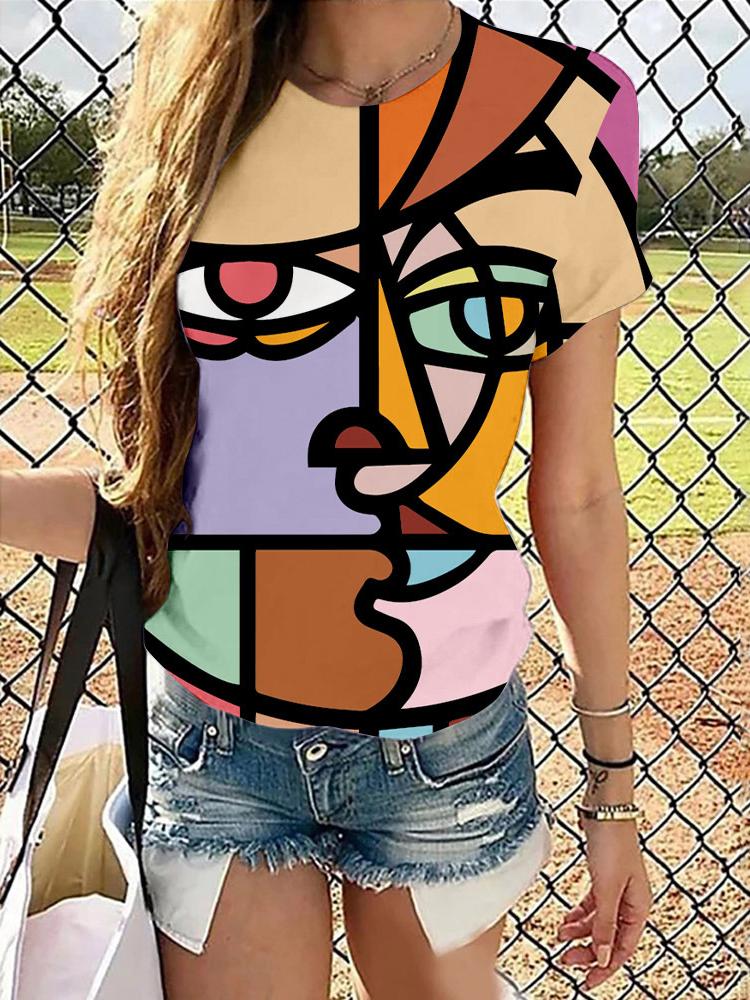 3d Digital Printing Round Neck T-shirt for Women