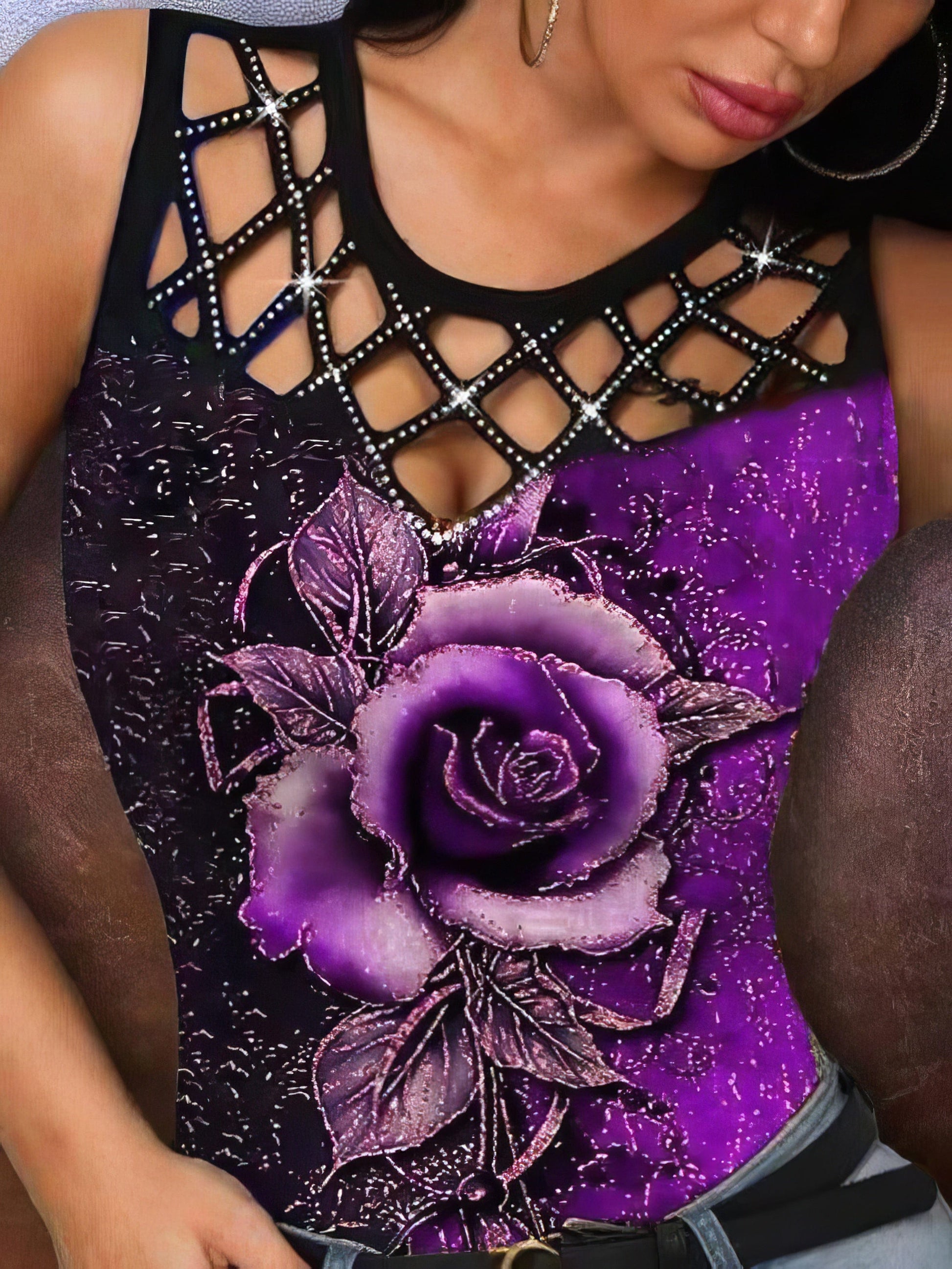 Upgrade your wardrobe with our stunning 3D Rose Hollow Crew Neck Tank Top. Perfect for fashion-forward women, this top combines style and comfort effortlessly.