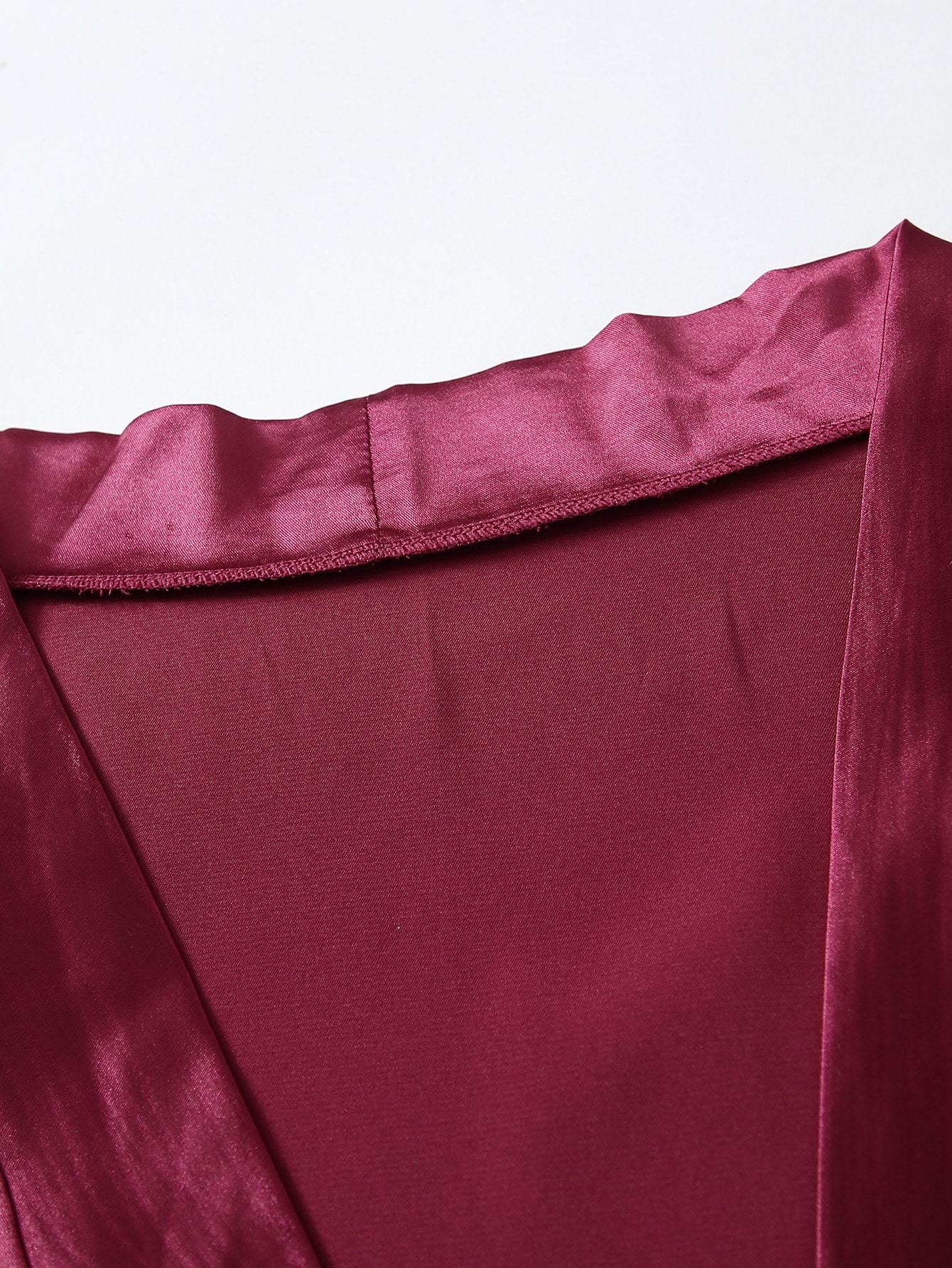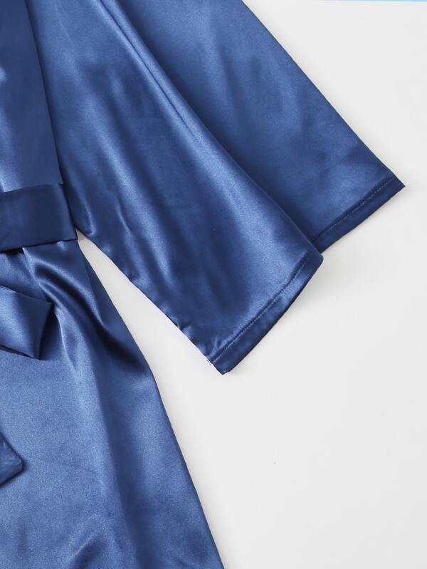 3pack Plus Contrast Lace Satin Lingerie Set & Robe for Women
