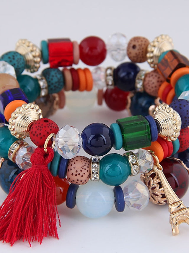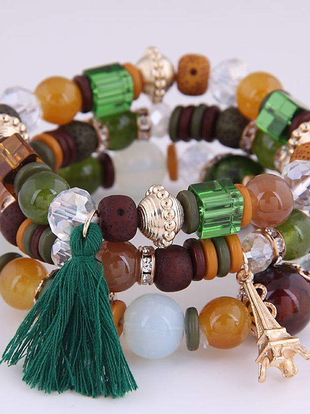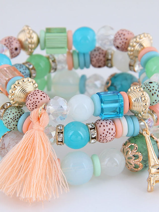 3pcs Bead Bracelet Bracelet Layered Fashion Tassel Bohemian Resin Bracelet Jewelry Black / White / Pink For Gift Daily Holiday Date for Women
