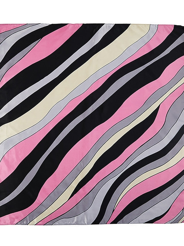 90*90cm Square Silk Scarf Women Shawls Neckerchief Stripe Print Hijab Scarf Lady Neck Scarves Soft Big Bandana for Women