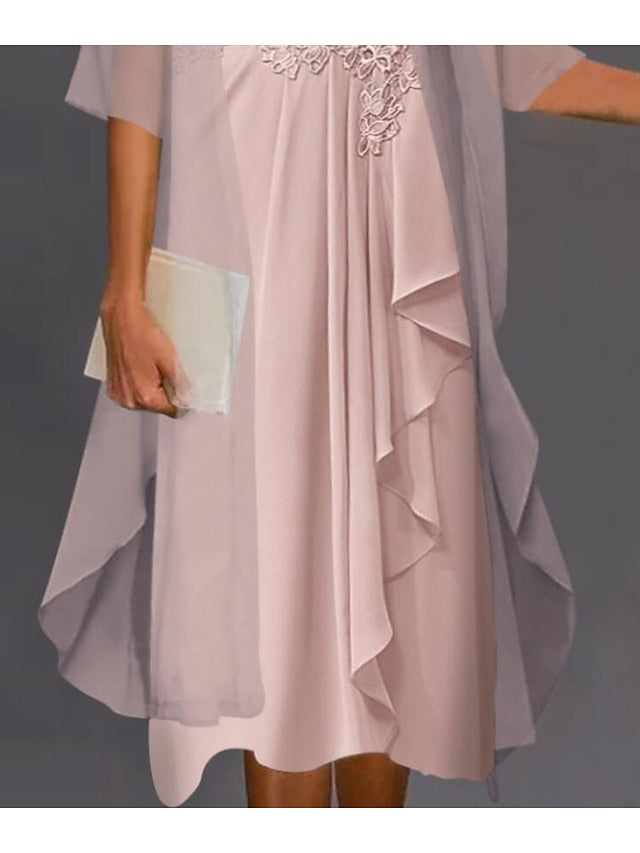 A Line Dress Knee Length Dress Blue Purple Pink Half Sleeve Floral Pure Color Ruched Mesh Fall Spring Crew Neck Elegant Casual Classic S M L XL XXL 3XL for Women