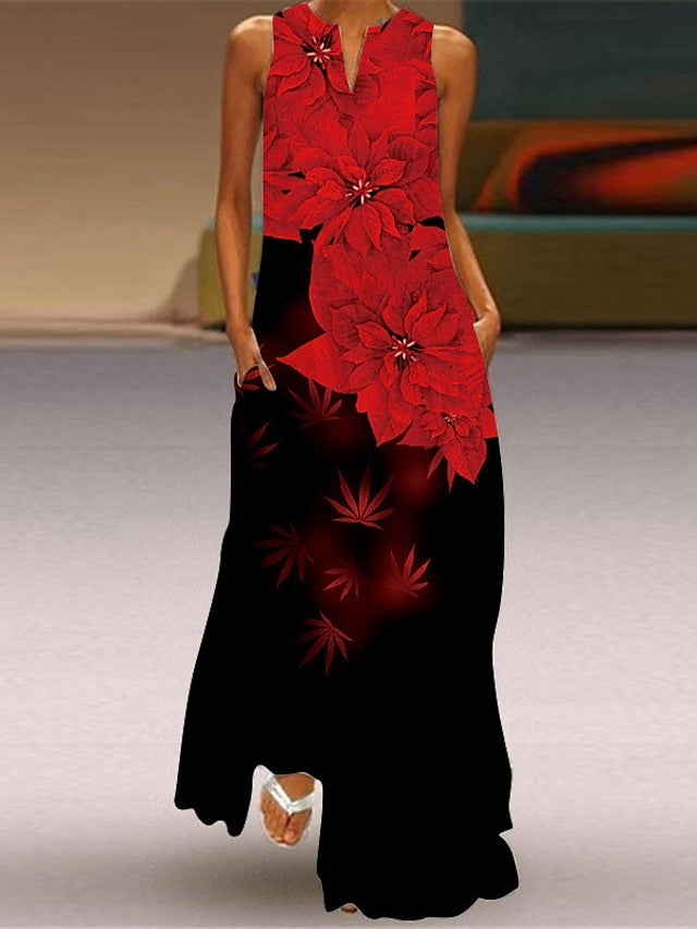 A Line Dress Long Dress Maxi Dress Black White Pink Sleeveless Floral Pocket Spring Summer Crew Neck Stylish S M L XL XXL 3XL 4XL 5XL for Women