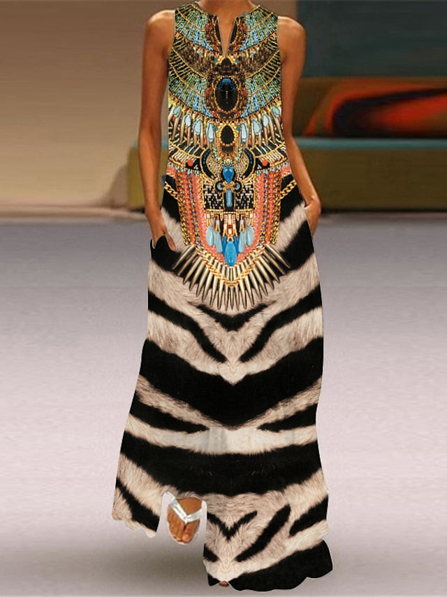 A Line Dress Maxi long Dress Black Sleeveless Floral Leopard Print Summer V Neck Stylish 5XL for Women