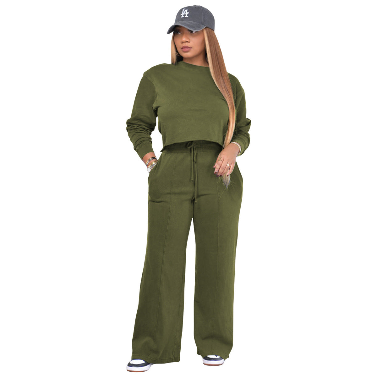 Athleisure Women Winter Thickened Crop Sweatshirt Casual Pants Two-Piece Sportswear Set