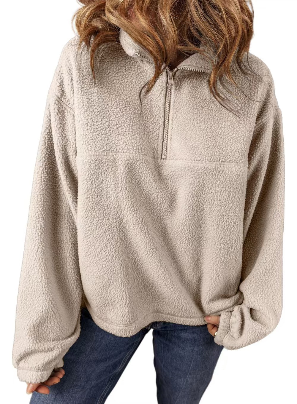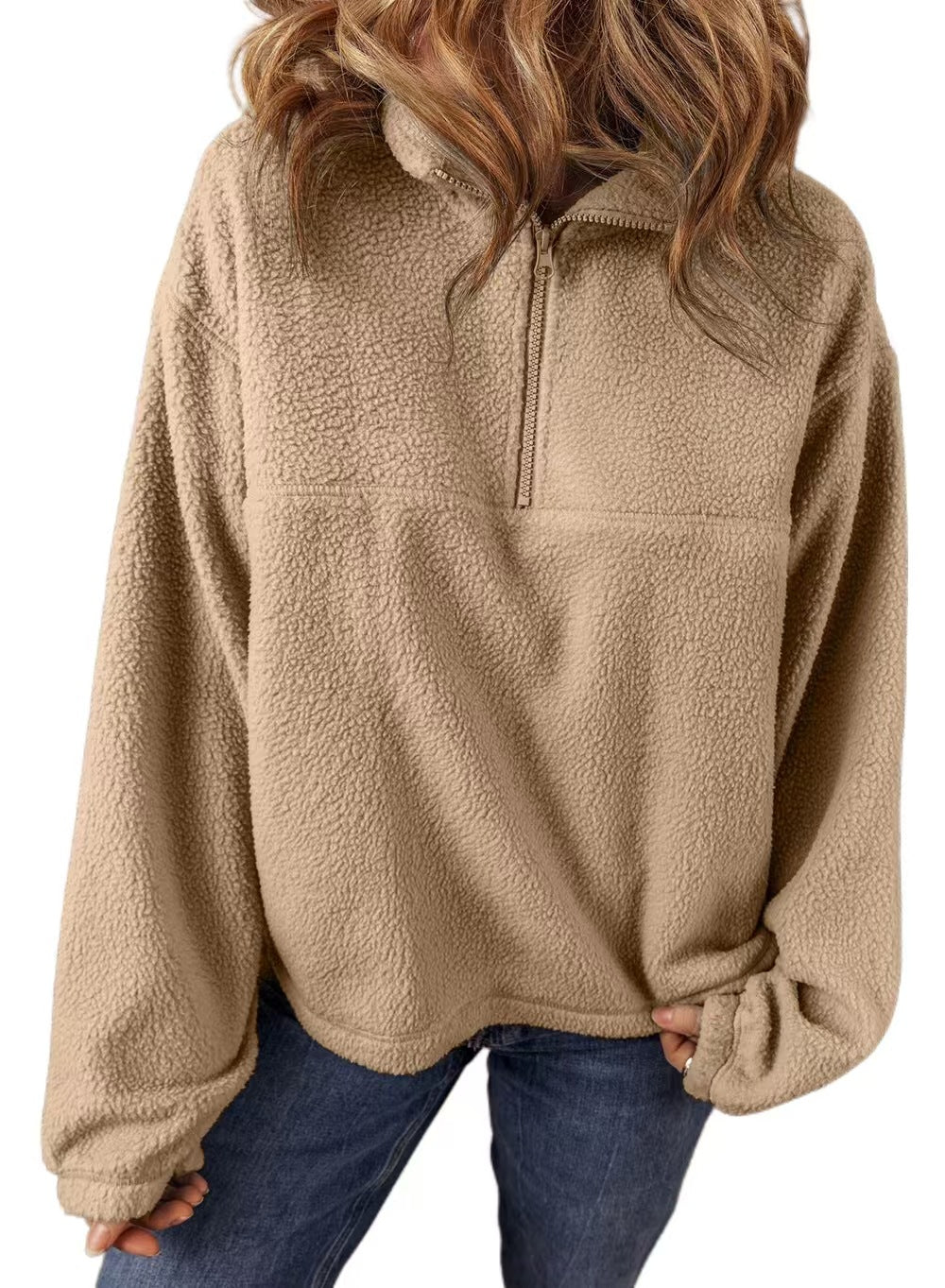Autumn Winter Women Fashion Casual Plush Stand Collar Half Zipper Long Sleeve Sweatshirt