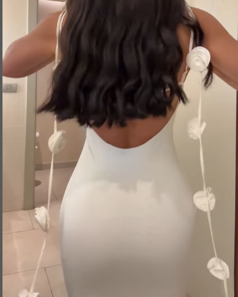 Backless Strap 3D Flower Decorated Suspender Evening Dress