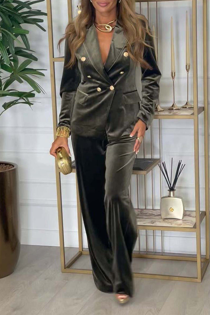 Casual Daily Buttons Patchwork Velvet Turn-back Collar Long Sleeve Two Pieces(3 Colors)