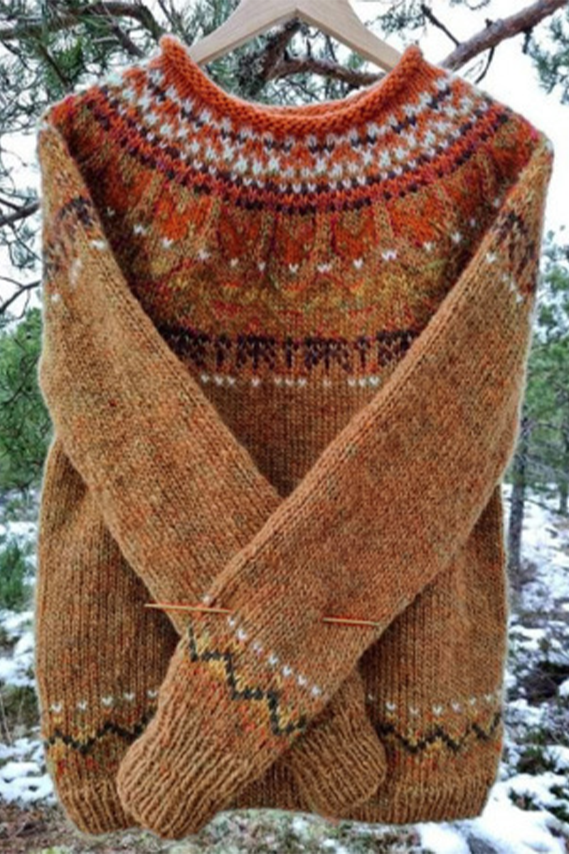 Casual Daily Geometric Stripe Contrast O Neck Sweaters(9 Colors)