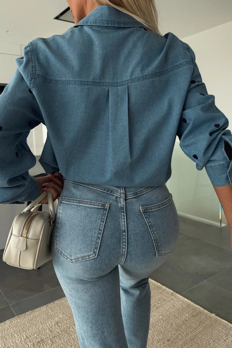 Casual Heart Shaped Buttons Turndown Collar Tops