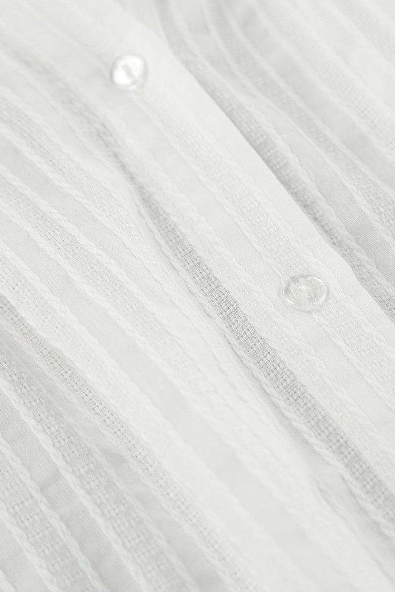 Casual Jacquard Buttons Texture Turndown Collar Blouses