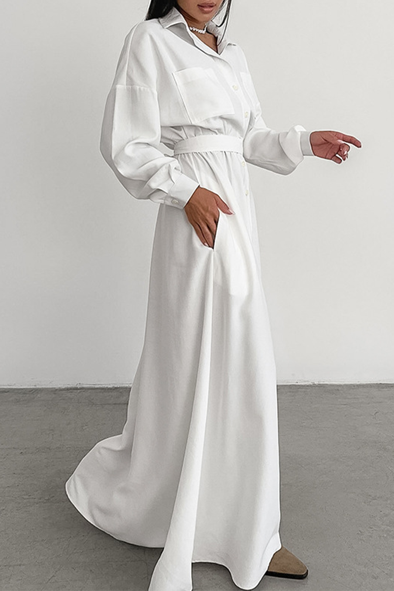 Casual Lace Up Buttons Turndown Collar Shirt Dresses