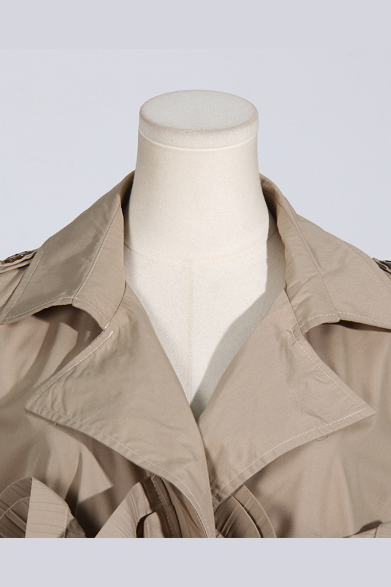 Casual Lace Up Ruffle Turndown Collar Blouses