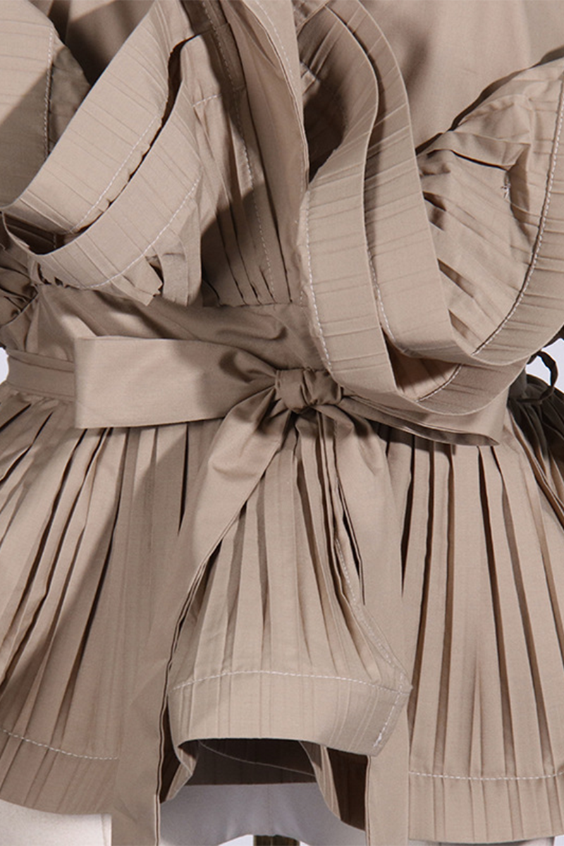Casual Lace Up Ruffle Turndown Collar Blouses