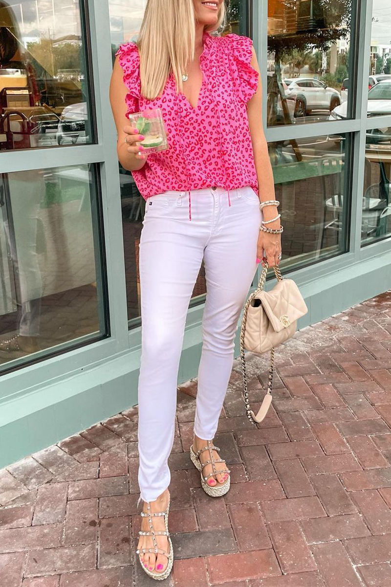 Casual Leopard Flounce V Neck T-Shirts(3 colors)