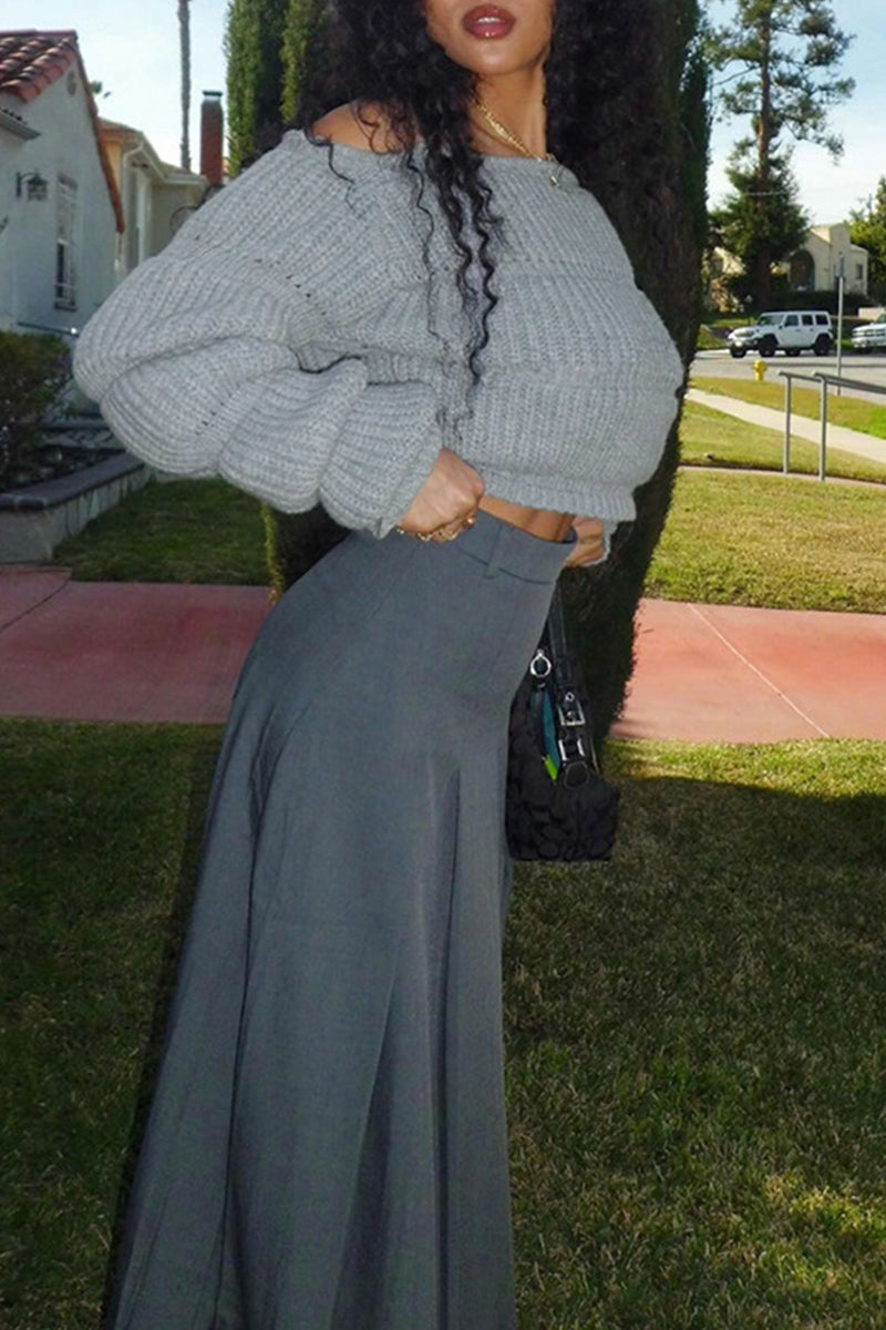 Casual Patchwork Off Shoulder Sweaters