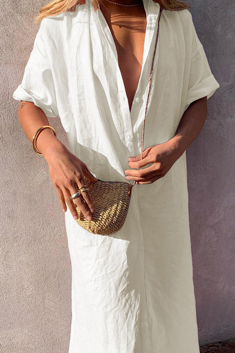 Casual Simplicity Solid Buttons Turndown Collar Shirt Dress Dresses