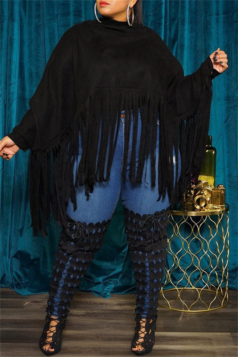 Casual Solid Color Fringed Trim Turtleneck Tops(6 Colors)