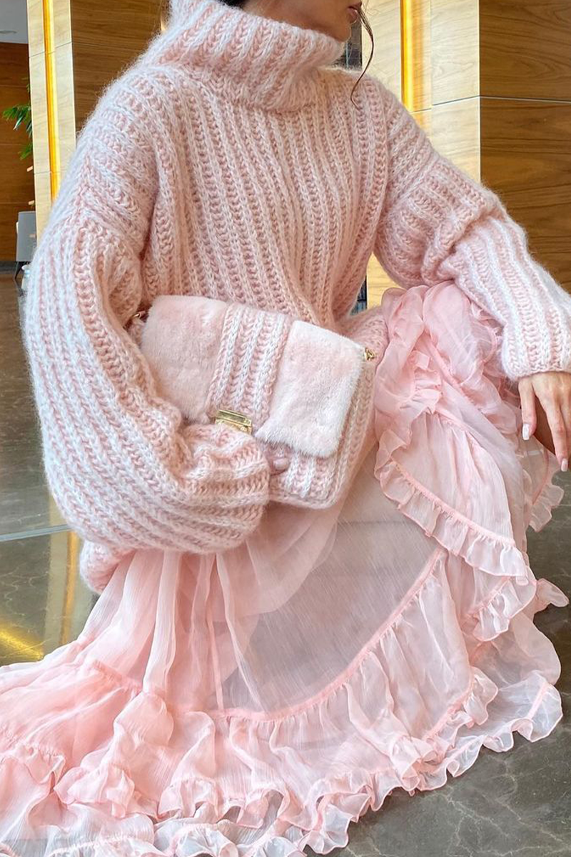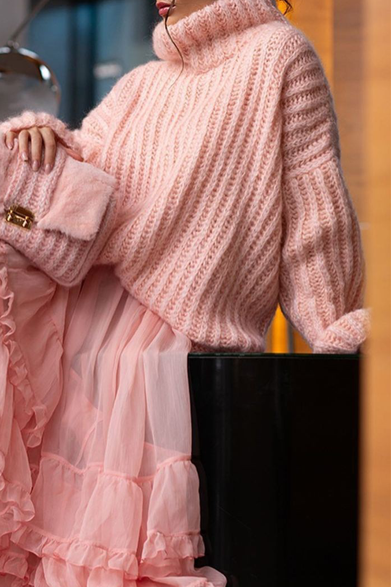 Casual Solid Color Weave Turtleneck Sweaters(4 Colors)