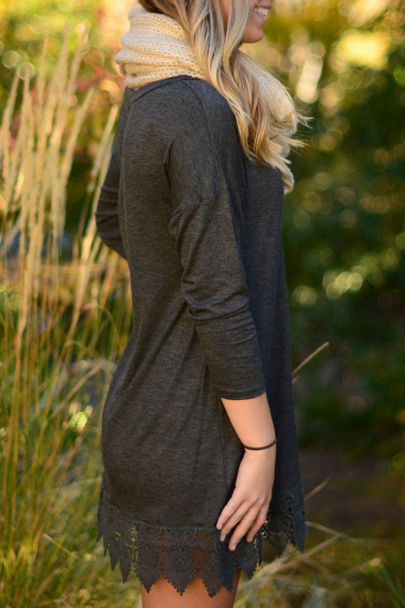 Casual Solid Patchwork O Neck Pencil Skirt Dresses