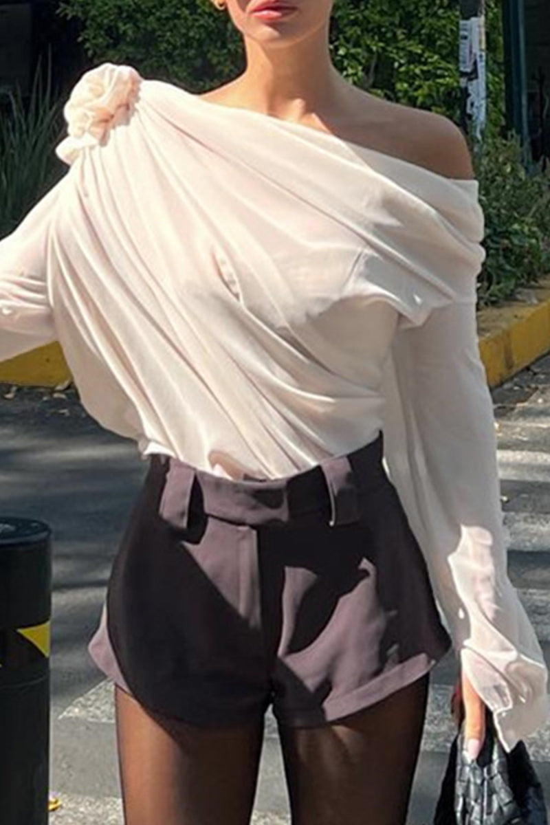 Casual Solid Patchwork Oblique Collar Tops(4 Colors)