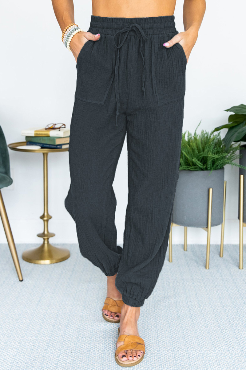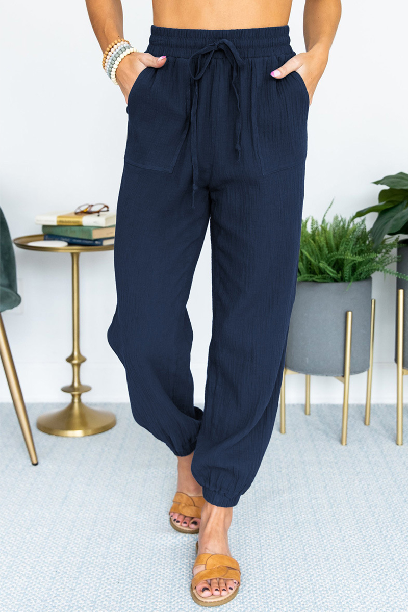 Casual Solid Patchwork Pocket Loose Mid Waist Harlan Solid Color Bottoms(6 Colors)