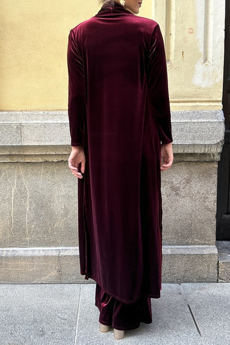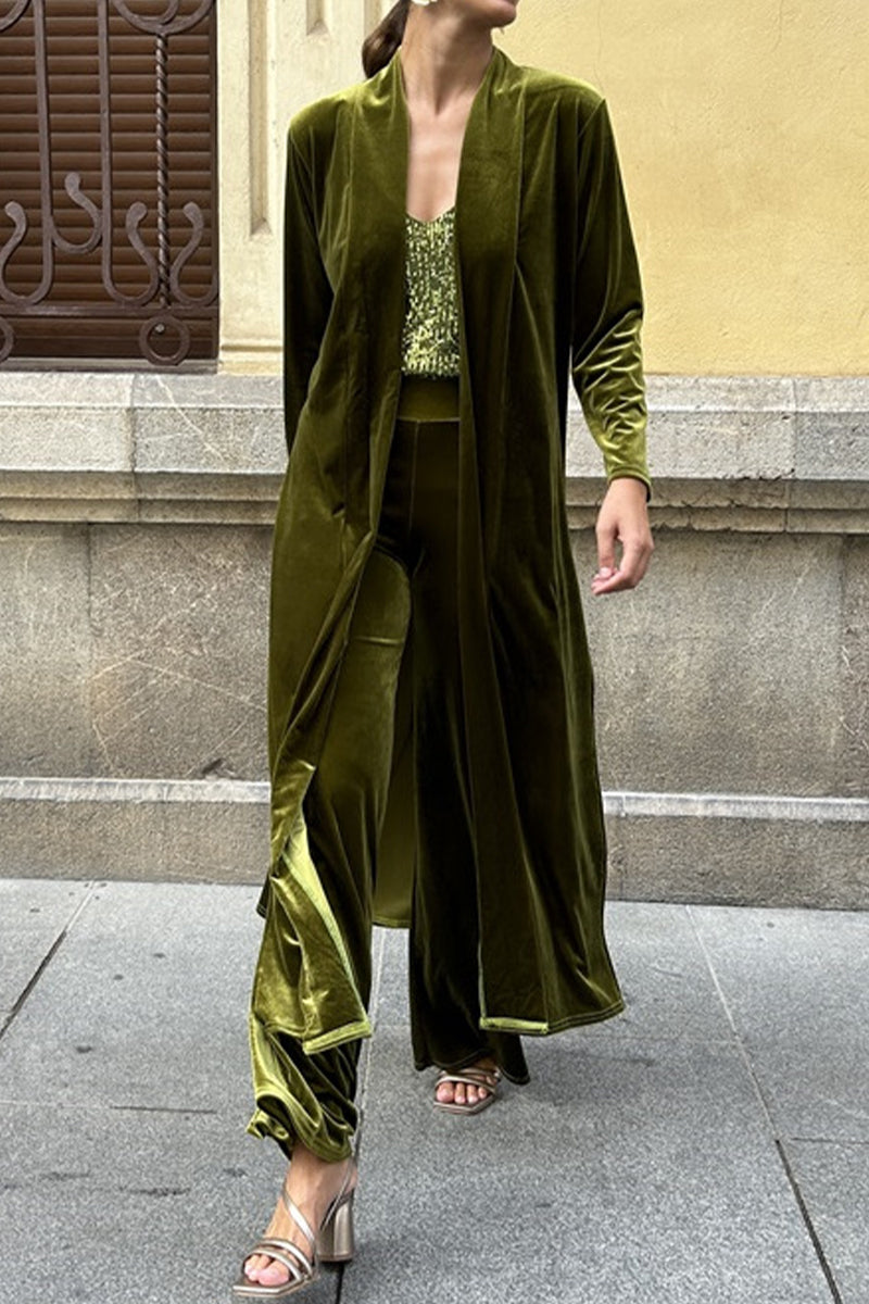 Casual Solid Slit Cardigan Collar Long Sleeve Two Pieces