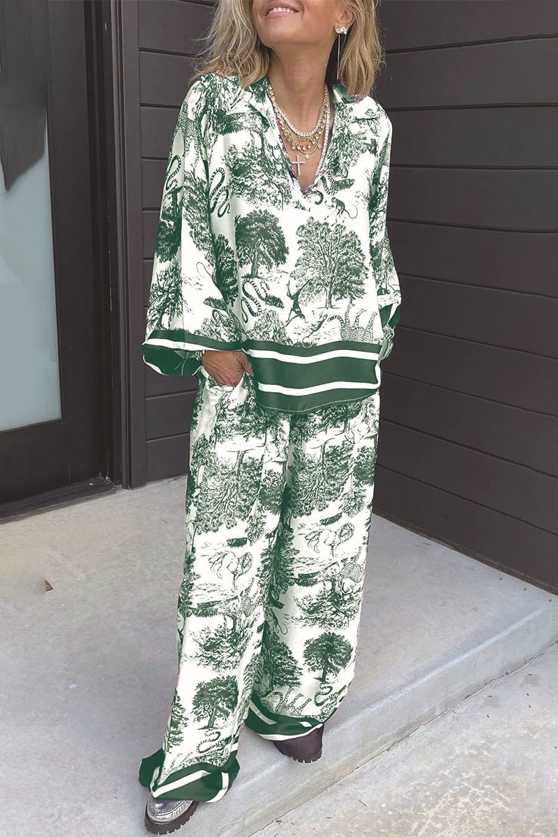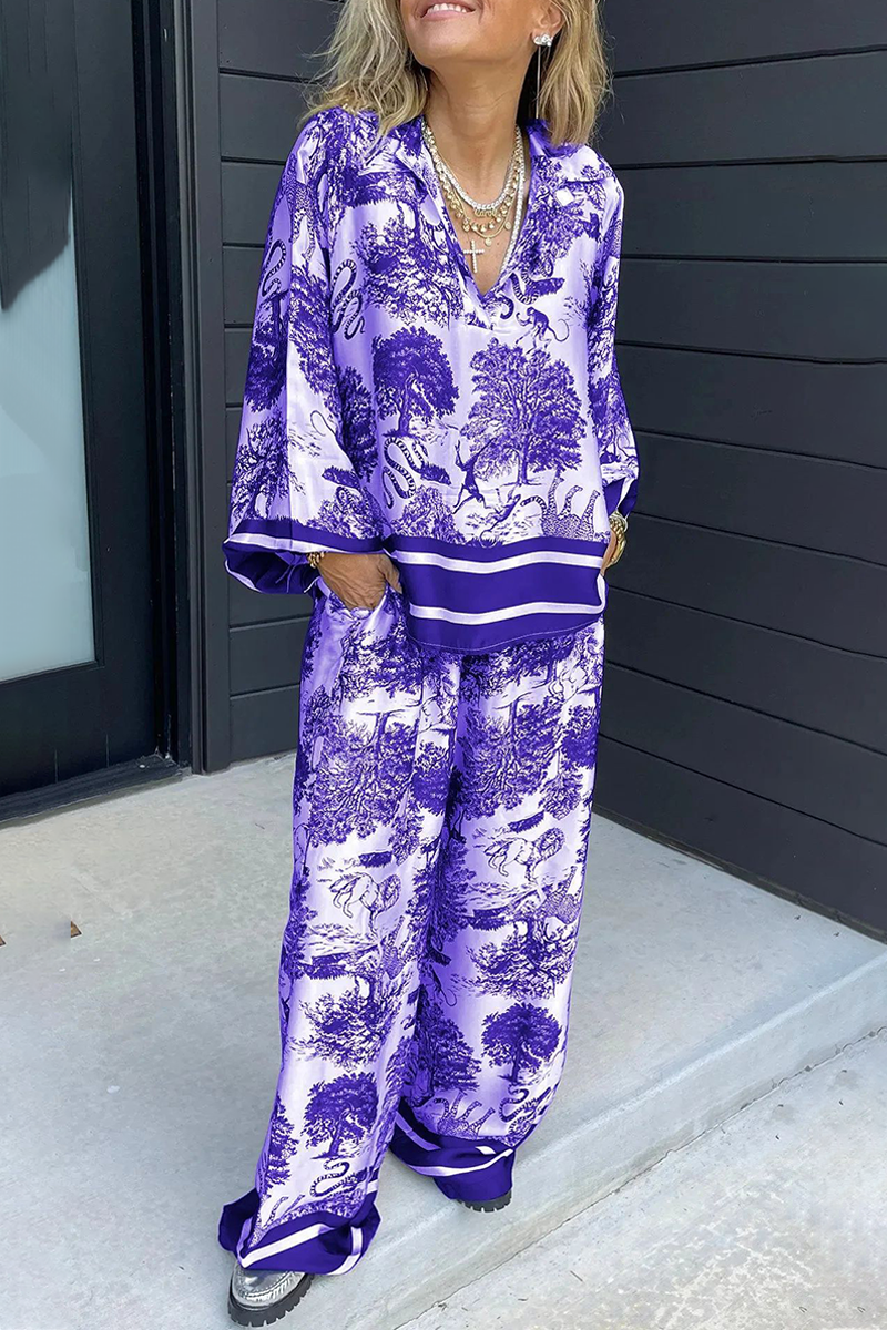 Casual Street Floral Print Distressed Draw String Pocket V Neck Long Sleeve Two Pieces(8 Colors)