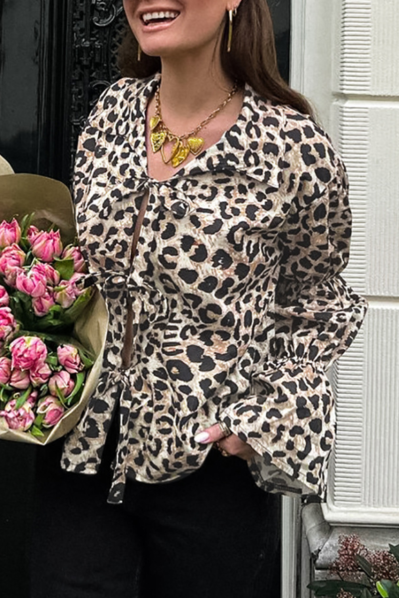 Casual Street Leopard Print Lace Up Turndown Collar Blouses