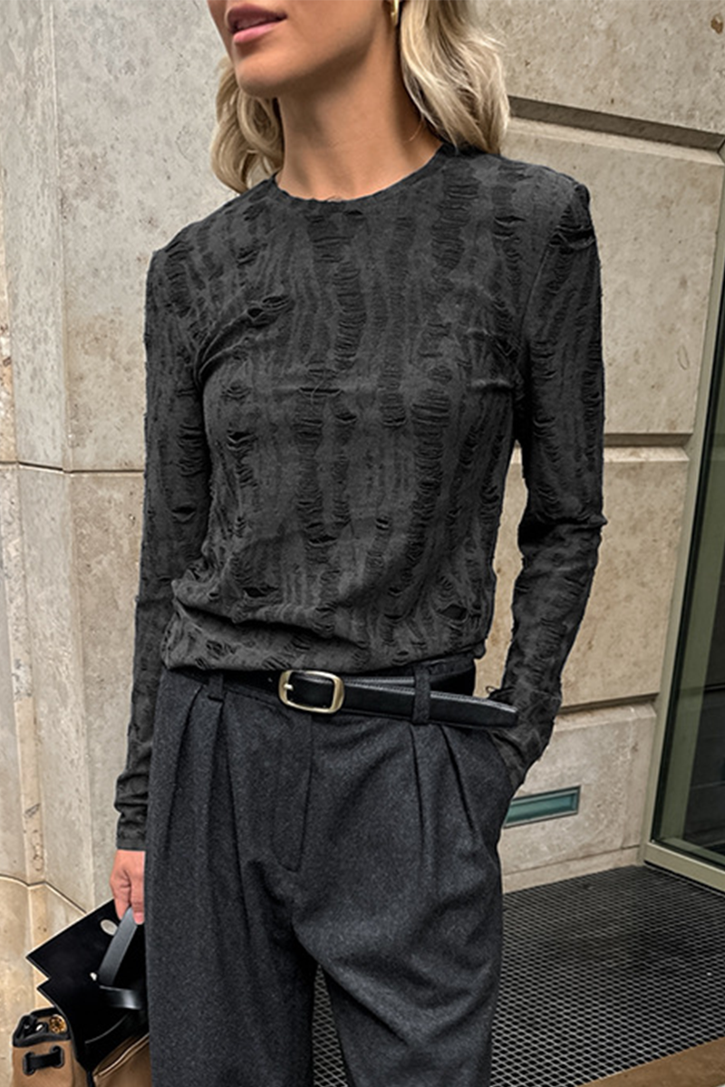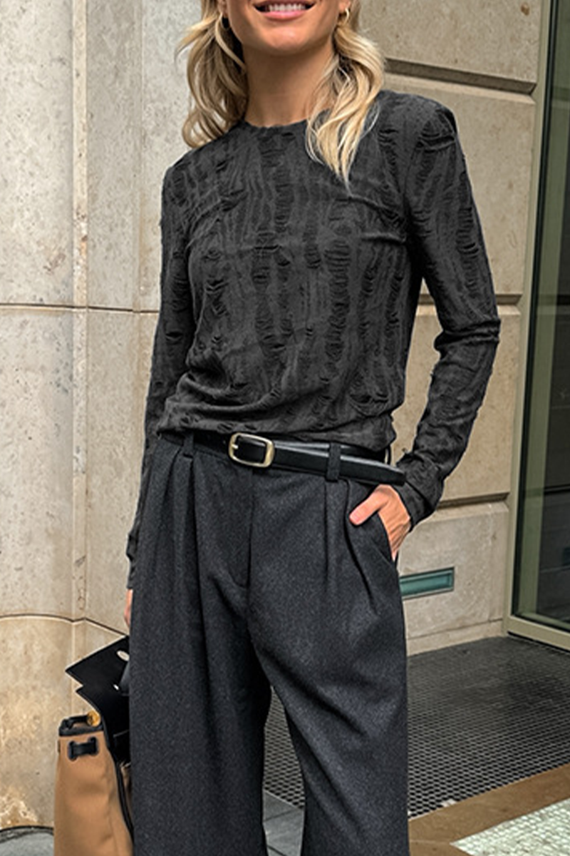 Casual Street Solid Color Ripped Distressed O Neck Tops