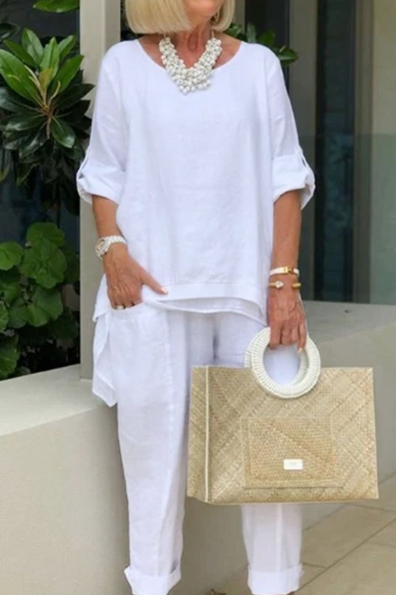Casual Street Solid Patchwork Pocket O Neck Long Sleeve Two Pieces