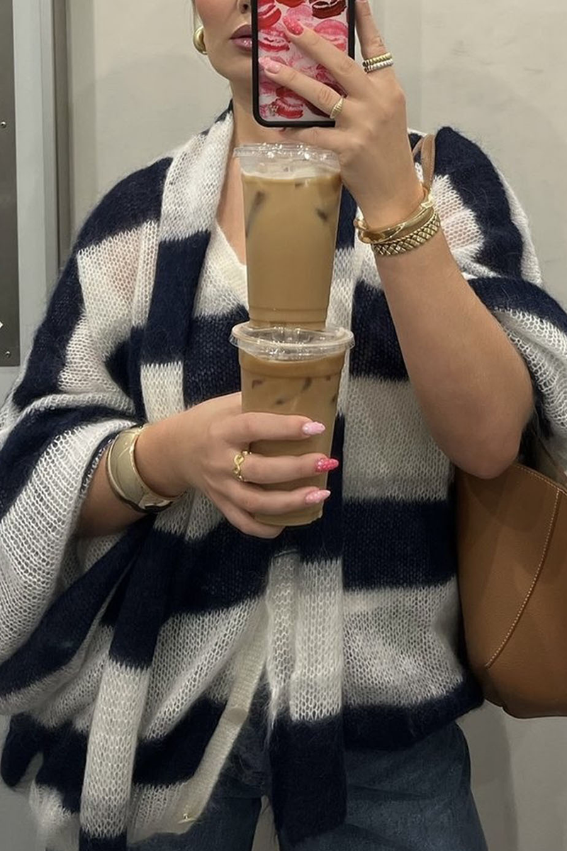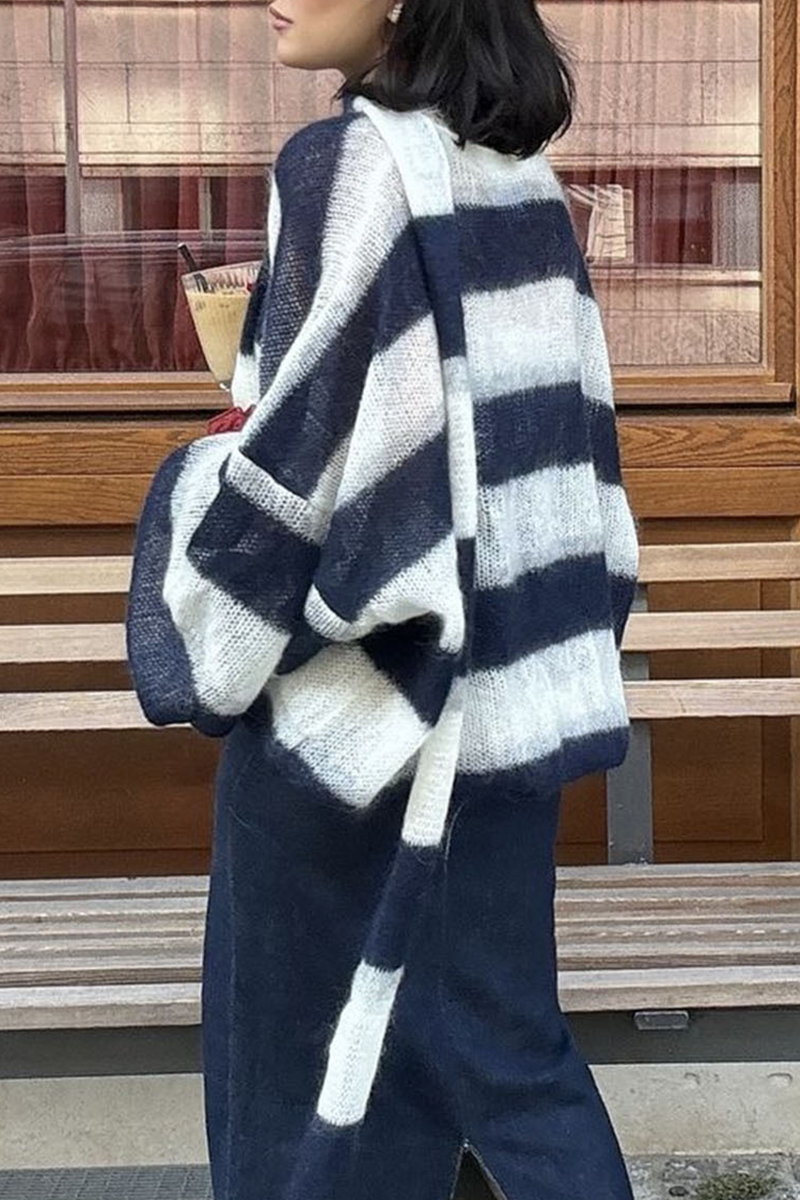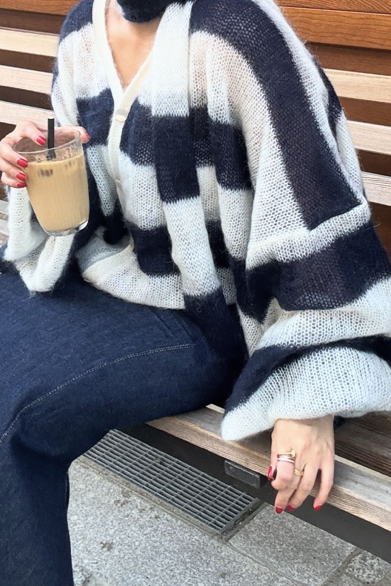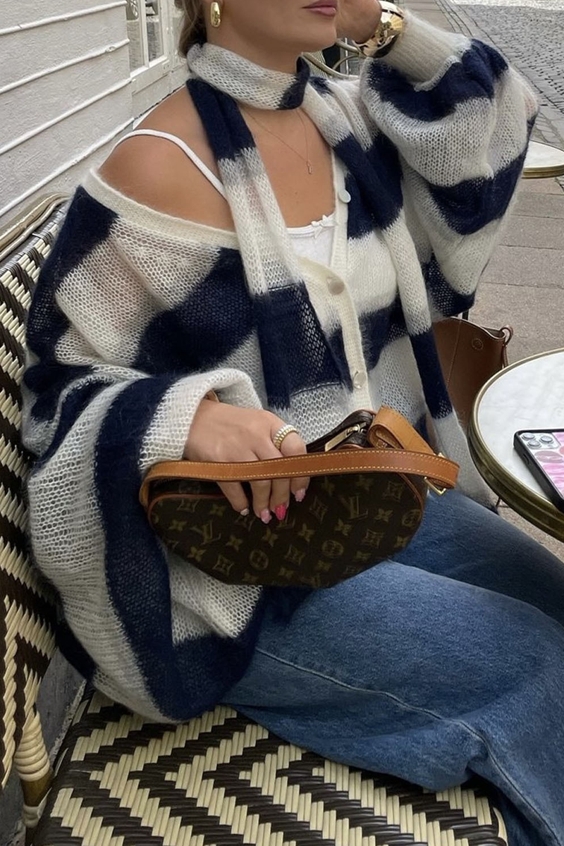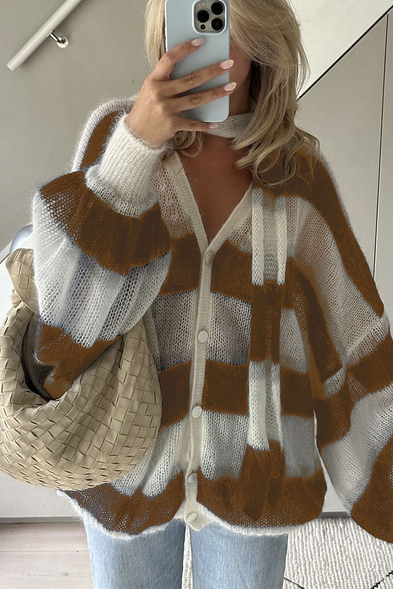 Casual Stripe Buttons Weave Contrast V Neck Cardigans(4 Colors)
