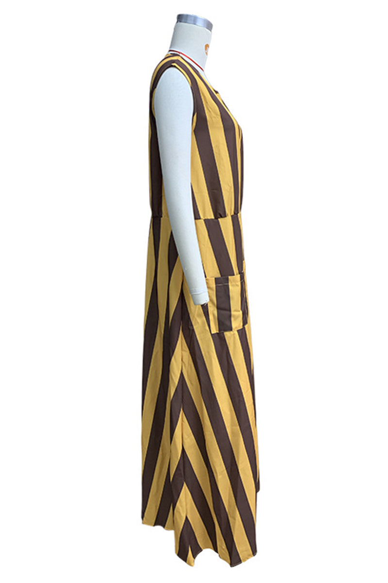 Casual Striped Print Pocket Contrast O Neck Sleeveless Dresses