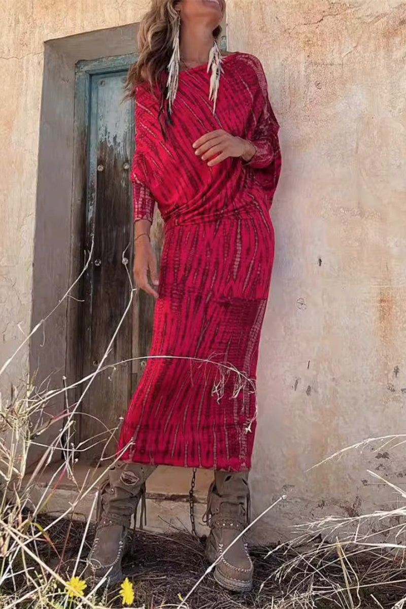 Casual Vintage Geometric Print Off the Shoulder One Step Skirt Dresses