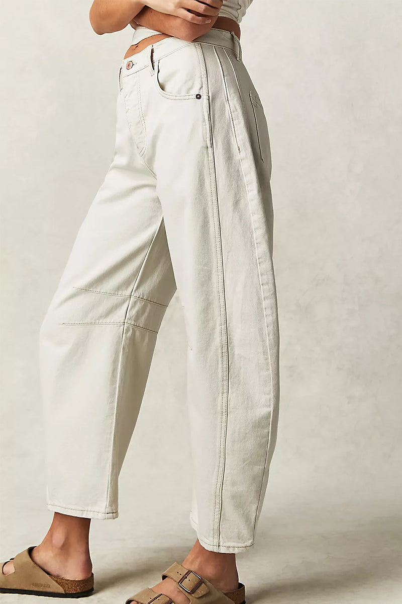 Casual Vintage Solid Pocket Without Belt Mid Waist Loose Denim Jeans(No Belt)