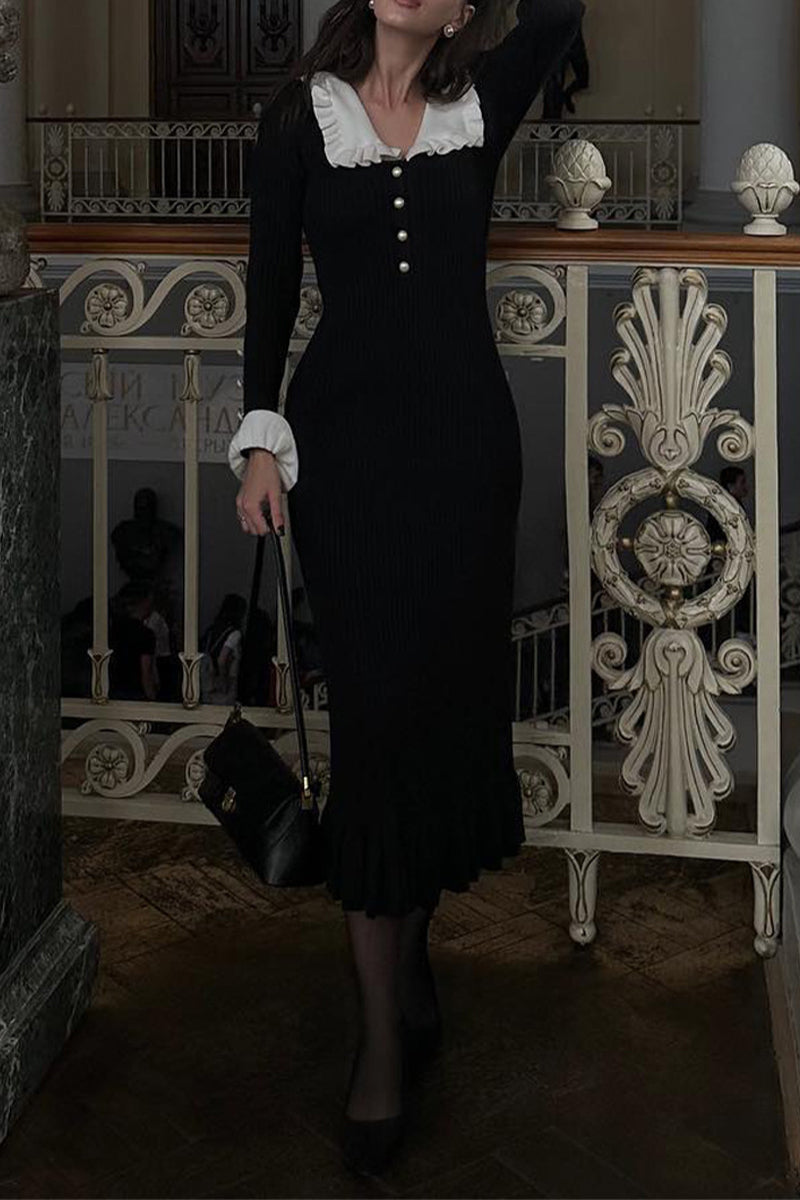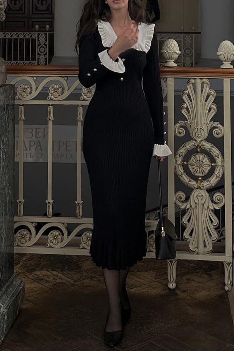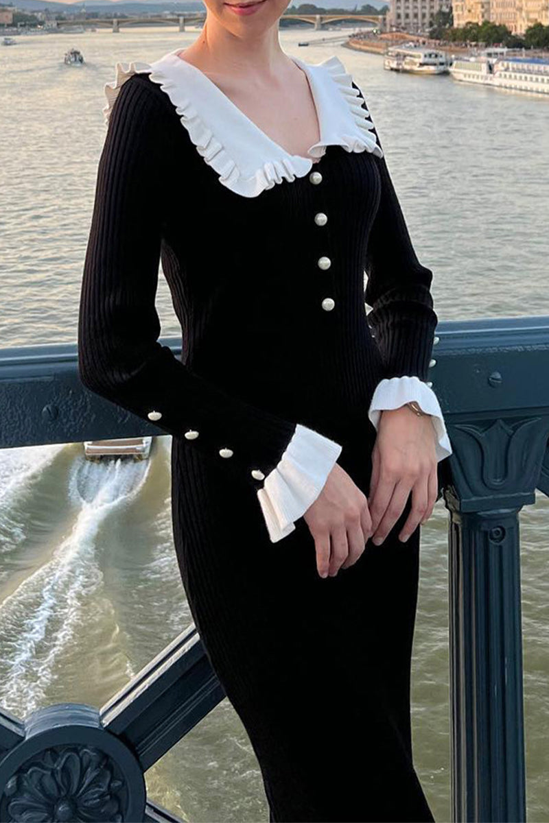 Daily Elegant Ruffle Turndown Collar One Step Skirt Dresses