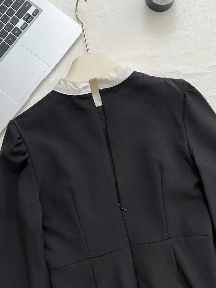 Elegant Evening Dresses for Women Patchwork O-neck Long Sleeves A-line Party Dress Korean Fashion French Retro Vestidos Mujer