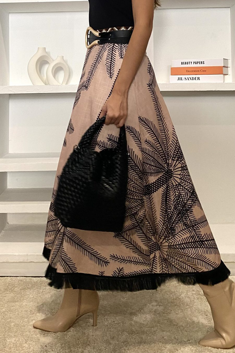 Elegant Floral Print Fringed Trim Pocket Contrast Loose High Waist Type A Full Print Bottoms(No waist belt)