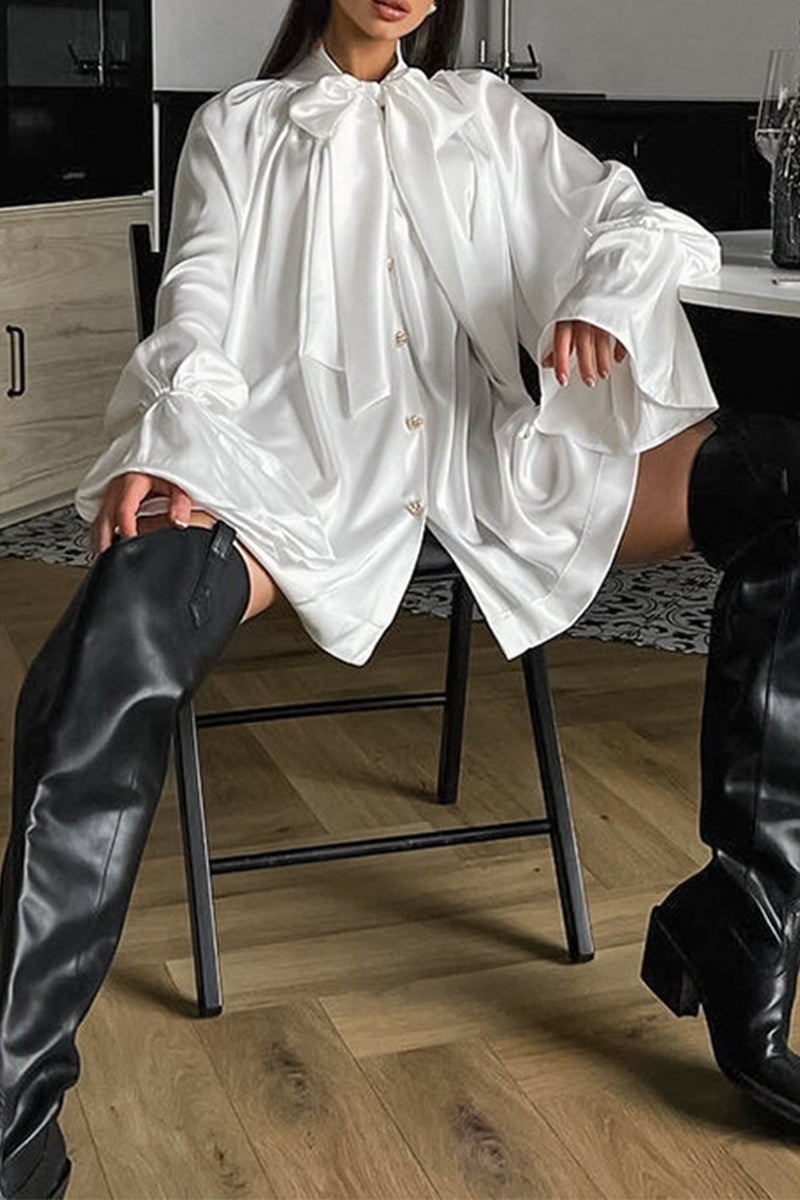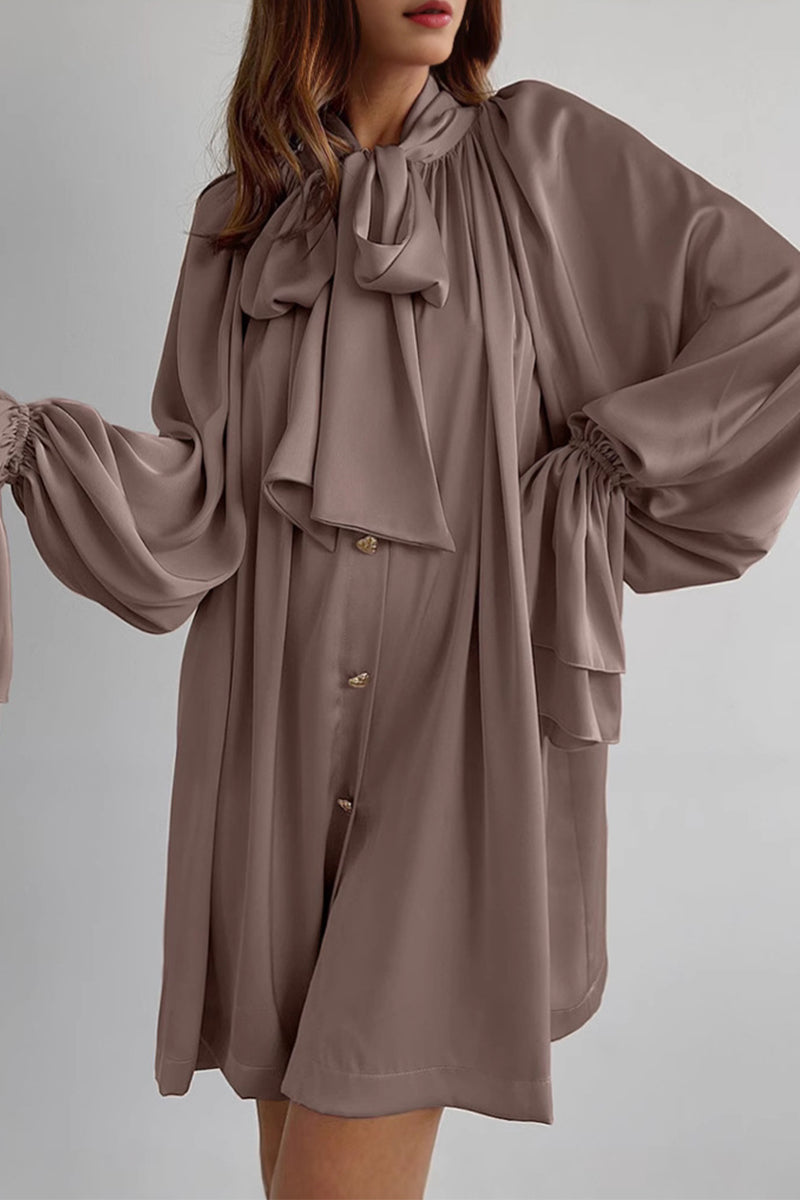 Elegant Lace Up Buckle Ribbon Collar A Line Dresses(3 Colors)