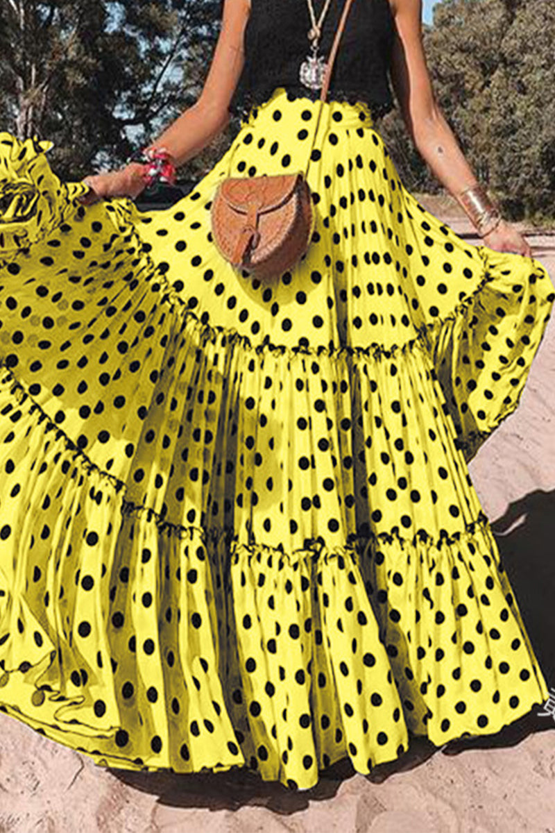 Elegant Polka Dot Patchwork High Waist Type A Patchwork Bottoms
