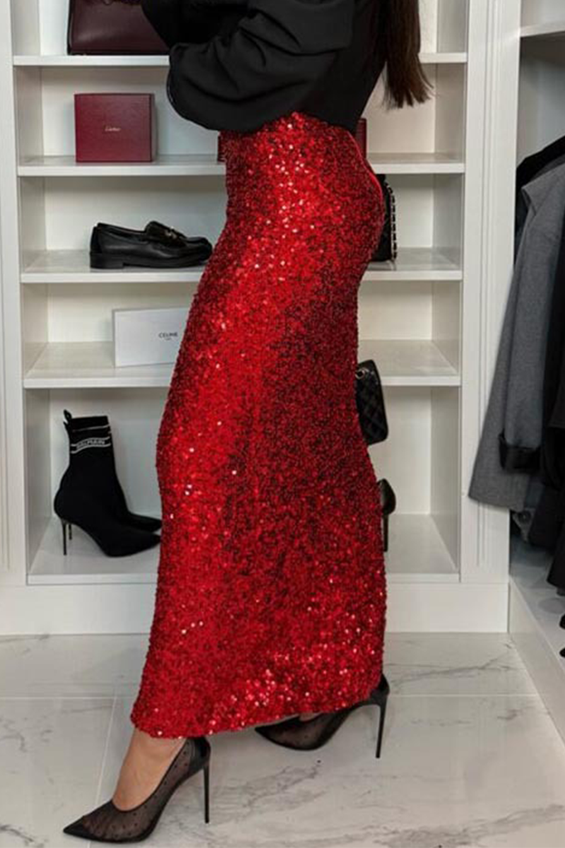 Elegant Sequins Regular High Waist Solid Color Bottoms(3 Colors)