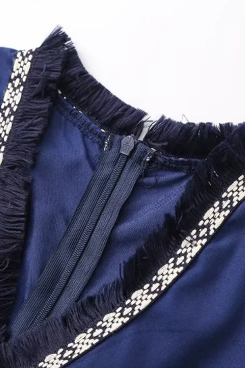Elegant Solid Color Fringed Trim Patchwork V Neck Sleeveless Dresses