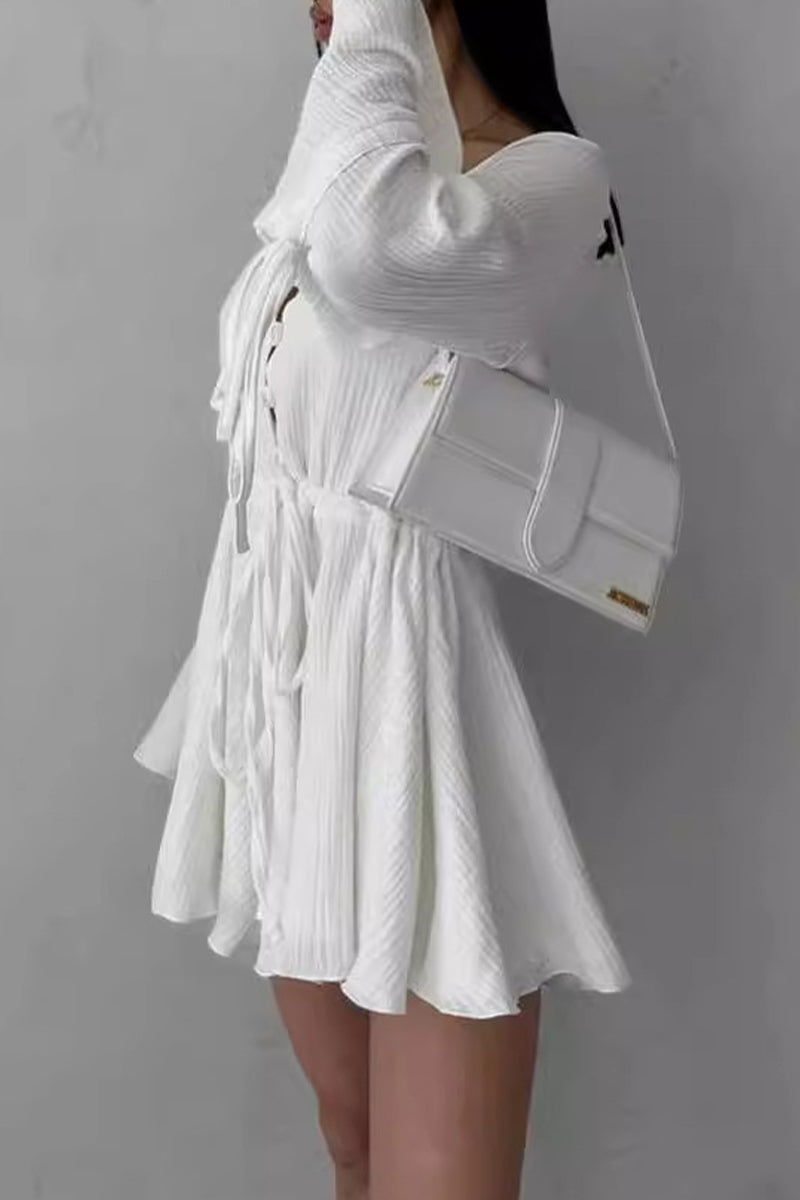 Elegant Solid Draw String Frenulum V Neck Rompers