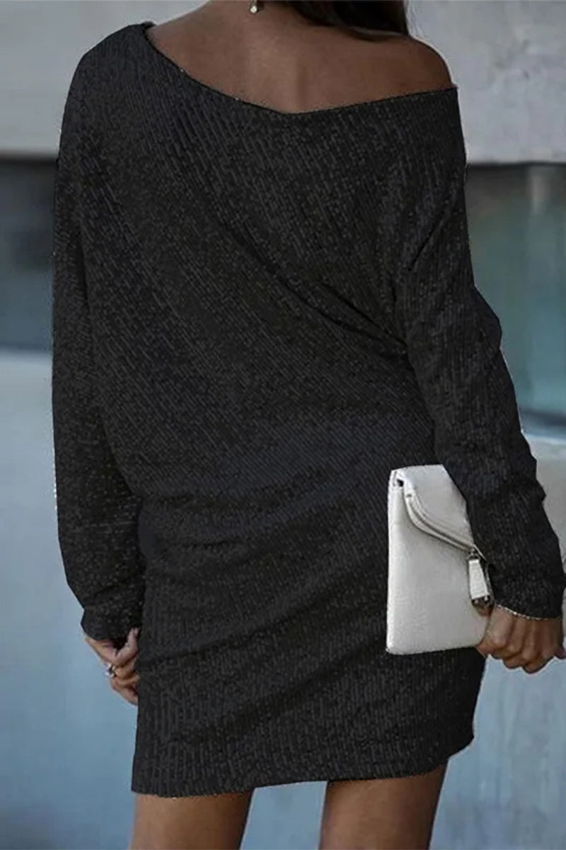 Elegant Solid Sequins Oblique Collar A Line Dresses