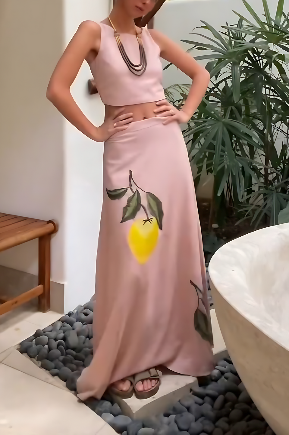 Inspired by the golden sunshine and vibrant landscapes of the Italian coast, this skirt captures the essence of summer with delicate lemon embroidery set against a soft blush pink background. Its fluid, timeless silhouette evokes the Mediterranean breezes and relaxed elegance with its effortless flow.