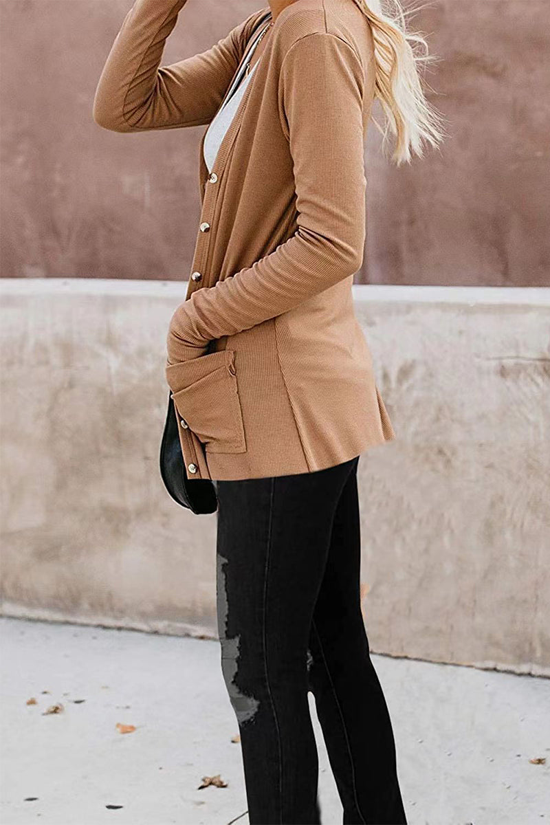 Fashion Casual Solid Patchwork Buttons V Neck T-Shirts(6 Colors)