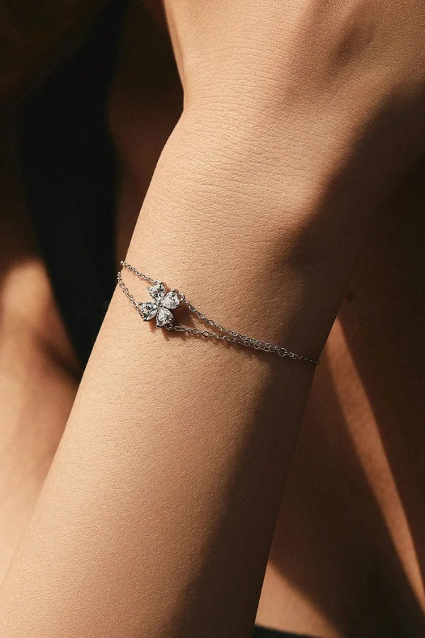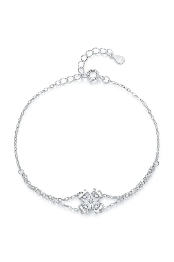 The Floral Heart Harmony Bracelet is a romantic and luxurious accessory designed to captivate. Made from sterling silver, this double-layer bracelet features an intricate design of flowers and hearts, adorned with sparkling cubic zirconia stones. The adjustable chain link ensures a comfortable and versatile fit, making it perfect for any occasion. Whether as a gift or a personal treasure, this bracelet embodies elegance and charm, adding a touch of romance to your jewelry collection.